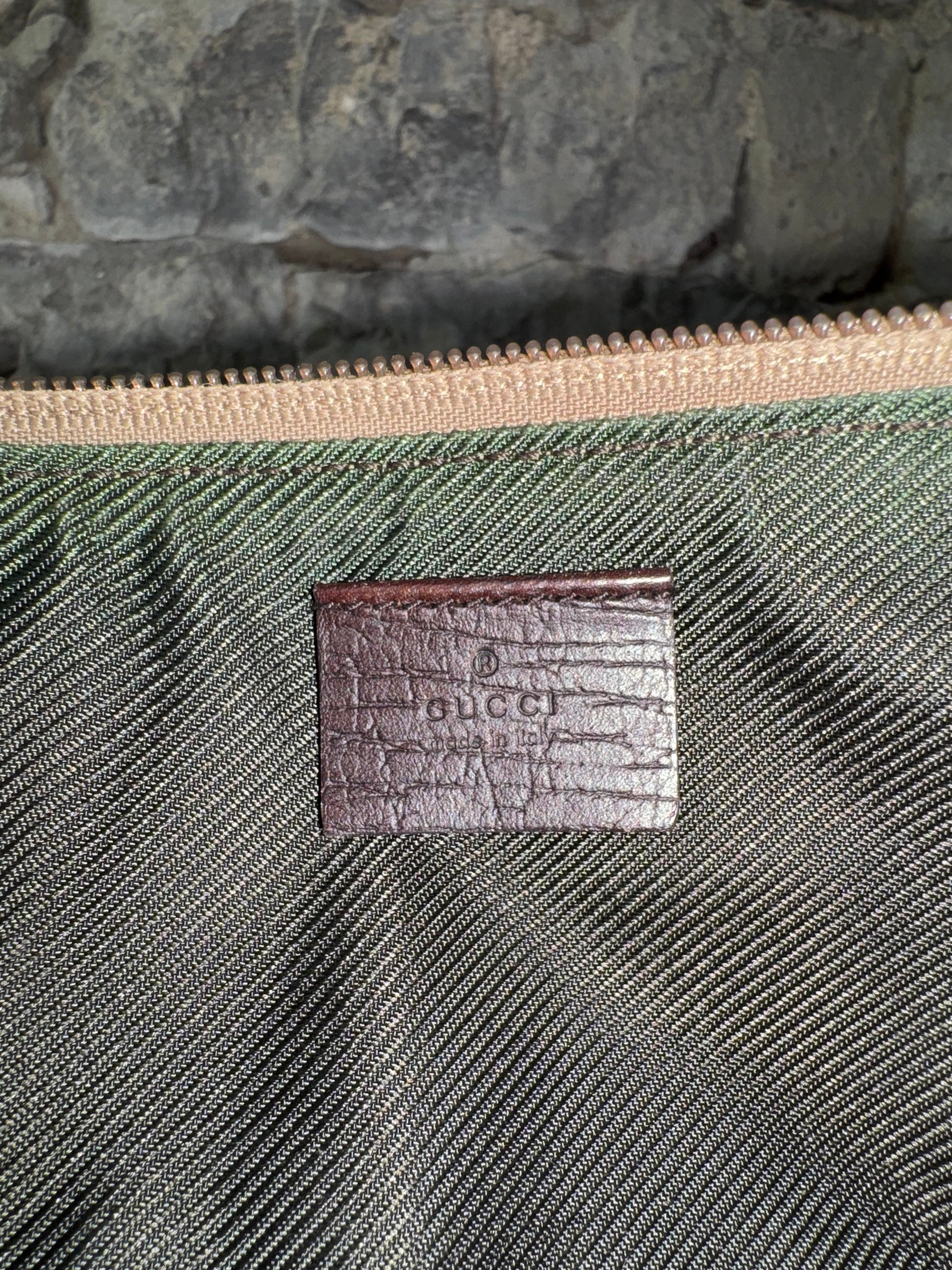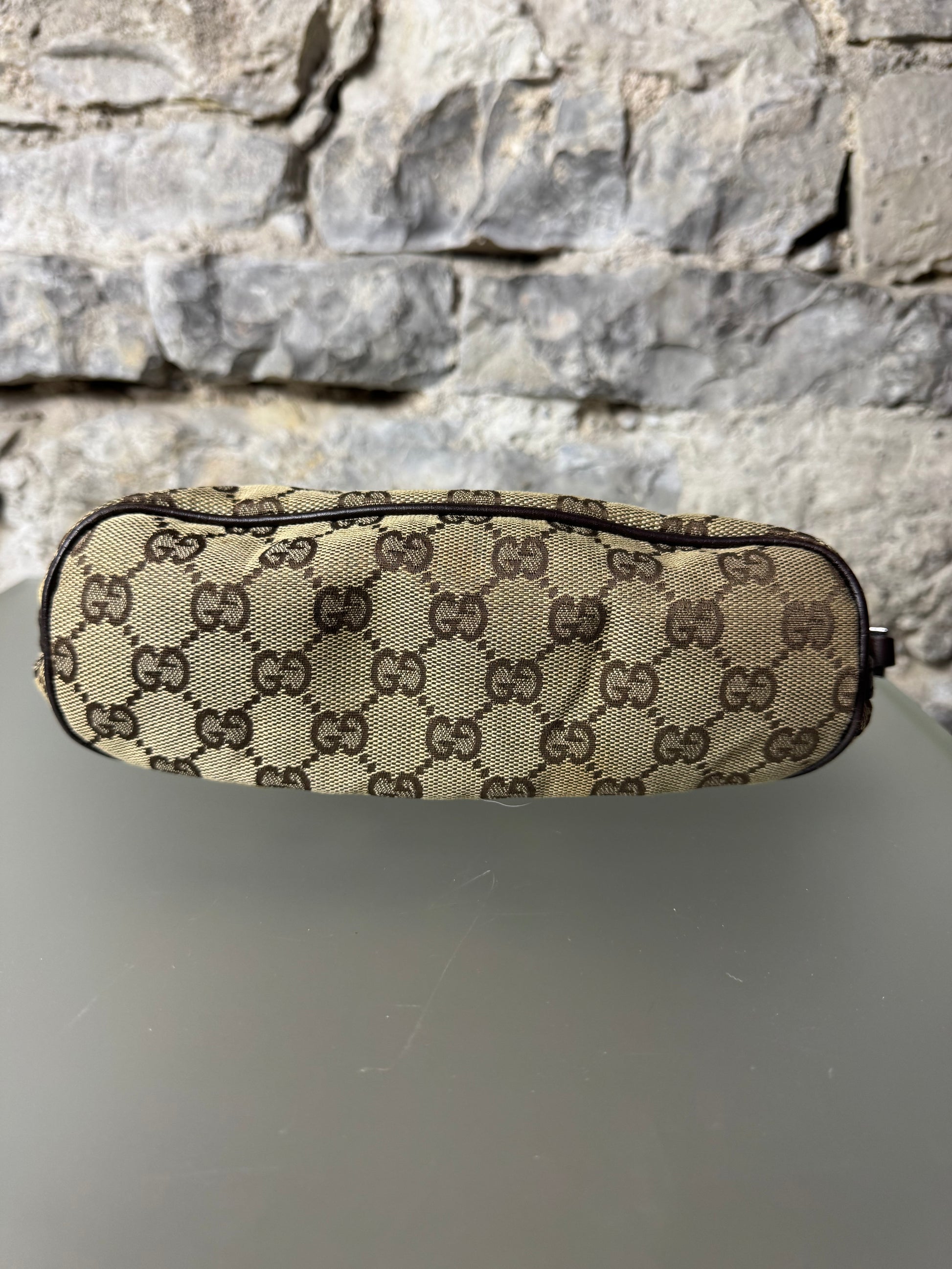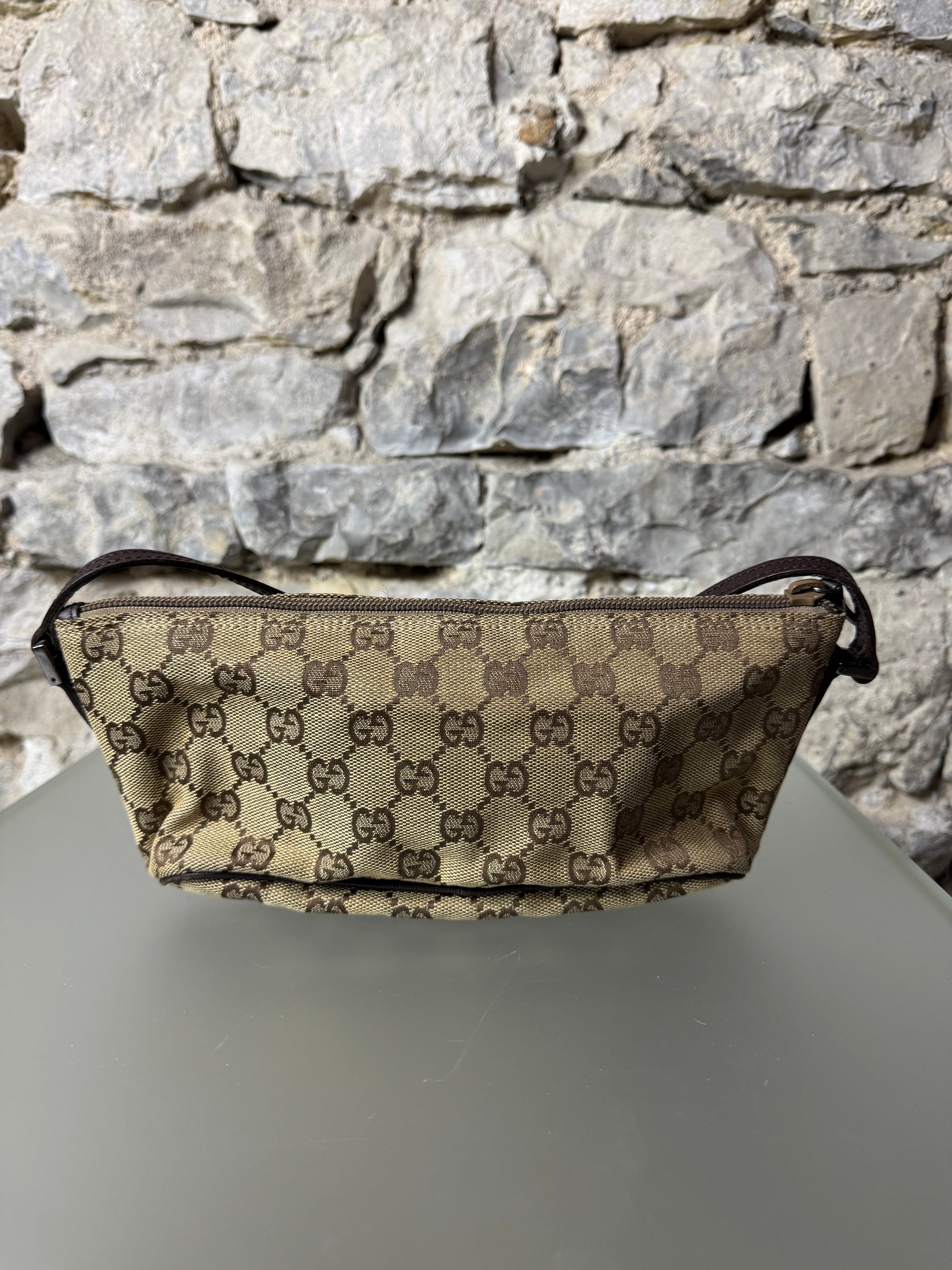 Die elegante Gucci Boat Pochette im ikonischen GG Canvas ist ein zeitloses Accessoire, das perfekt als kleine Schultertasche oder Abendtasche getragen werden kann. Das klassische Monogramm-Design verleiht ihr einen sofort erkennbaren, luxuriösen Look.