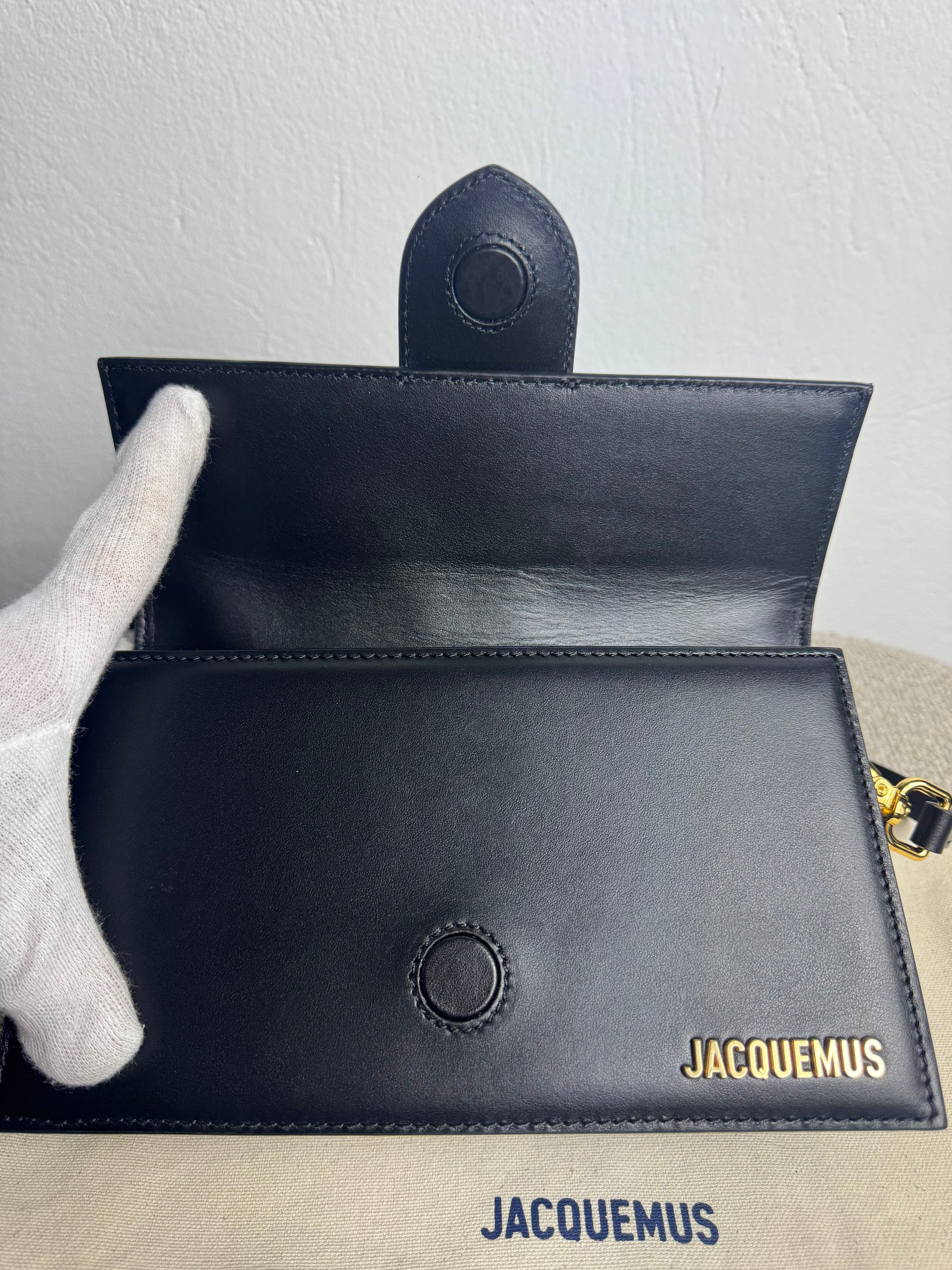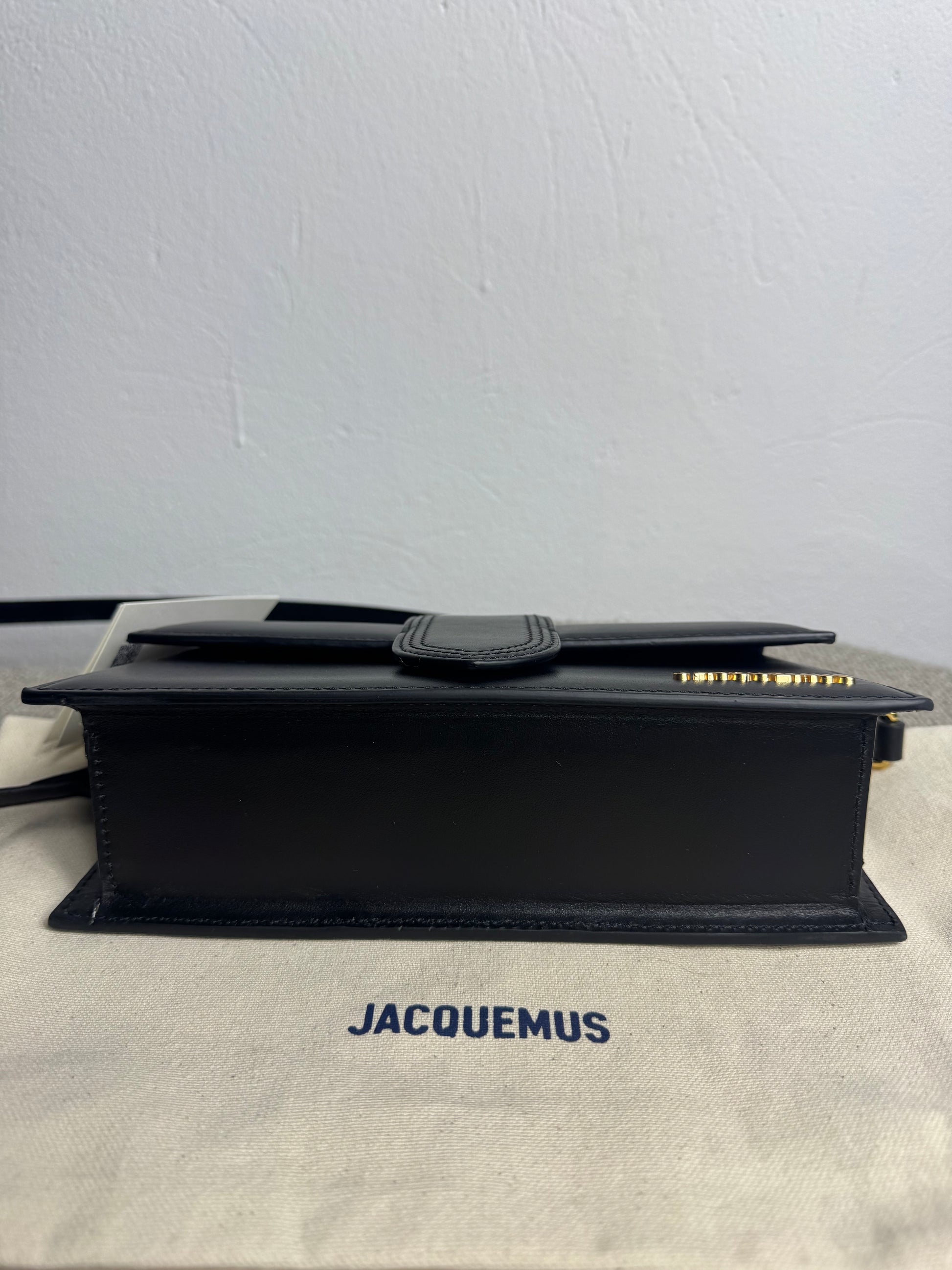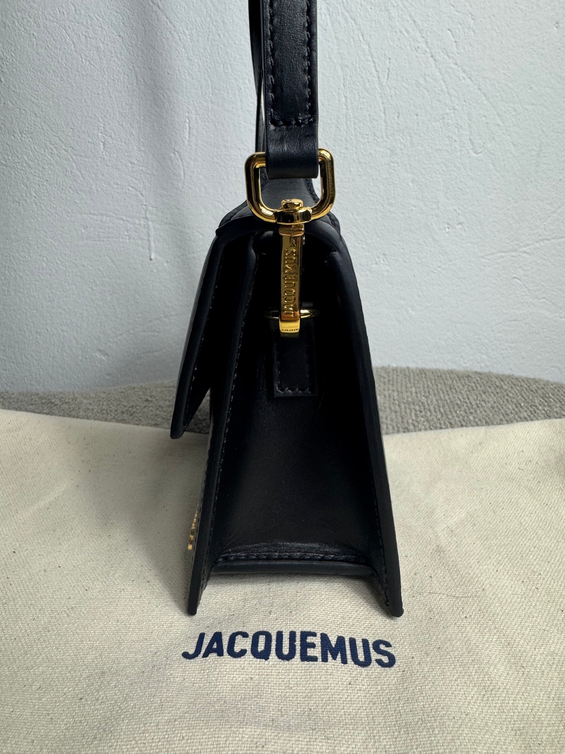 Die Jacquemus Le Grand Bambino in klassischem Schwarz ist ein ikonisches Modell des französischen Modehauses Jacquemus. Mit ihrer klaren, minimalistischen Linienführung und dem markanten goldfarbenen Jacquemus-Logo auf der Front steht diese Tasche für moderne Eleganz und zeitlosen Stil.