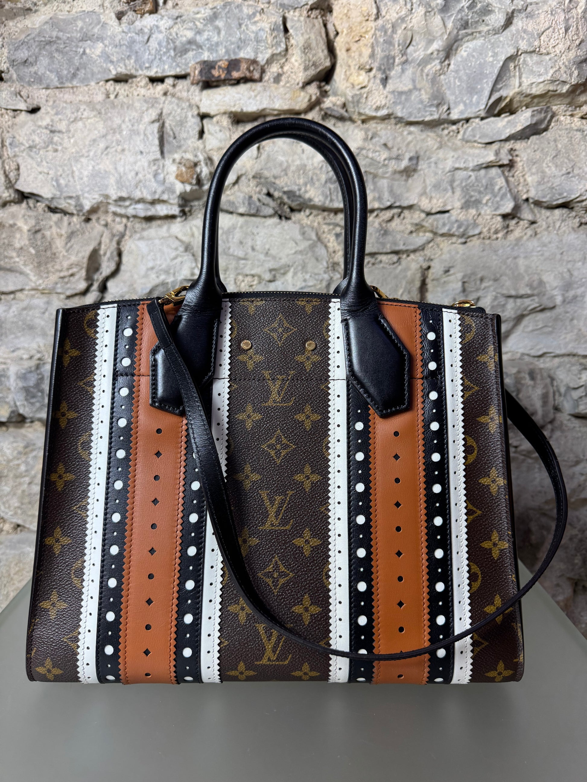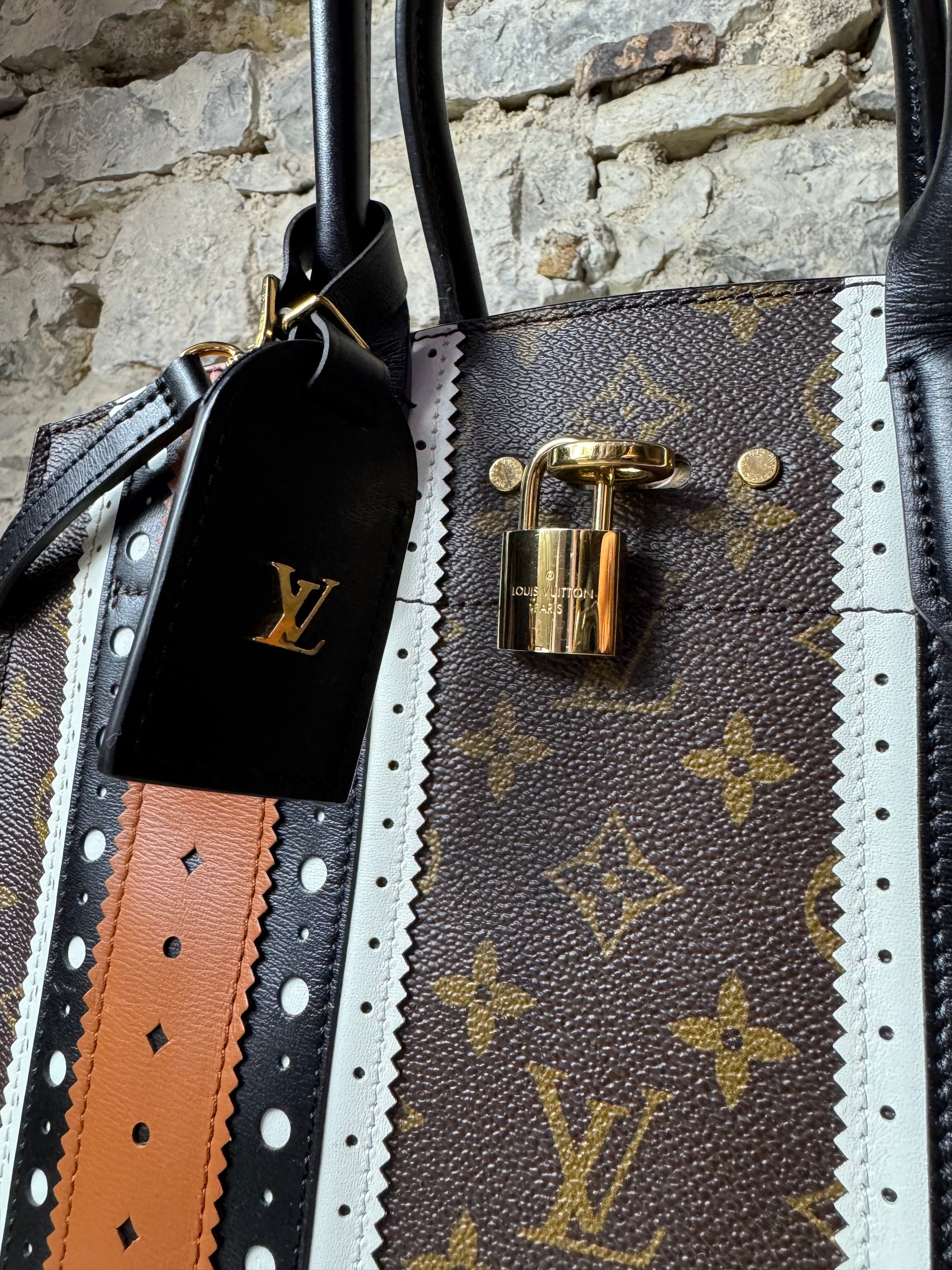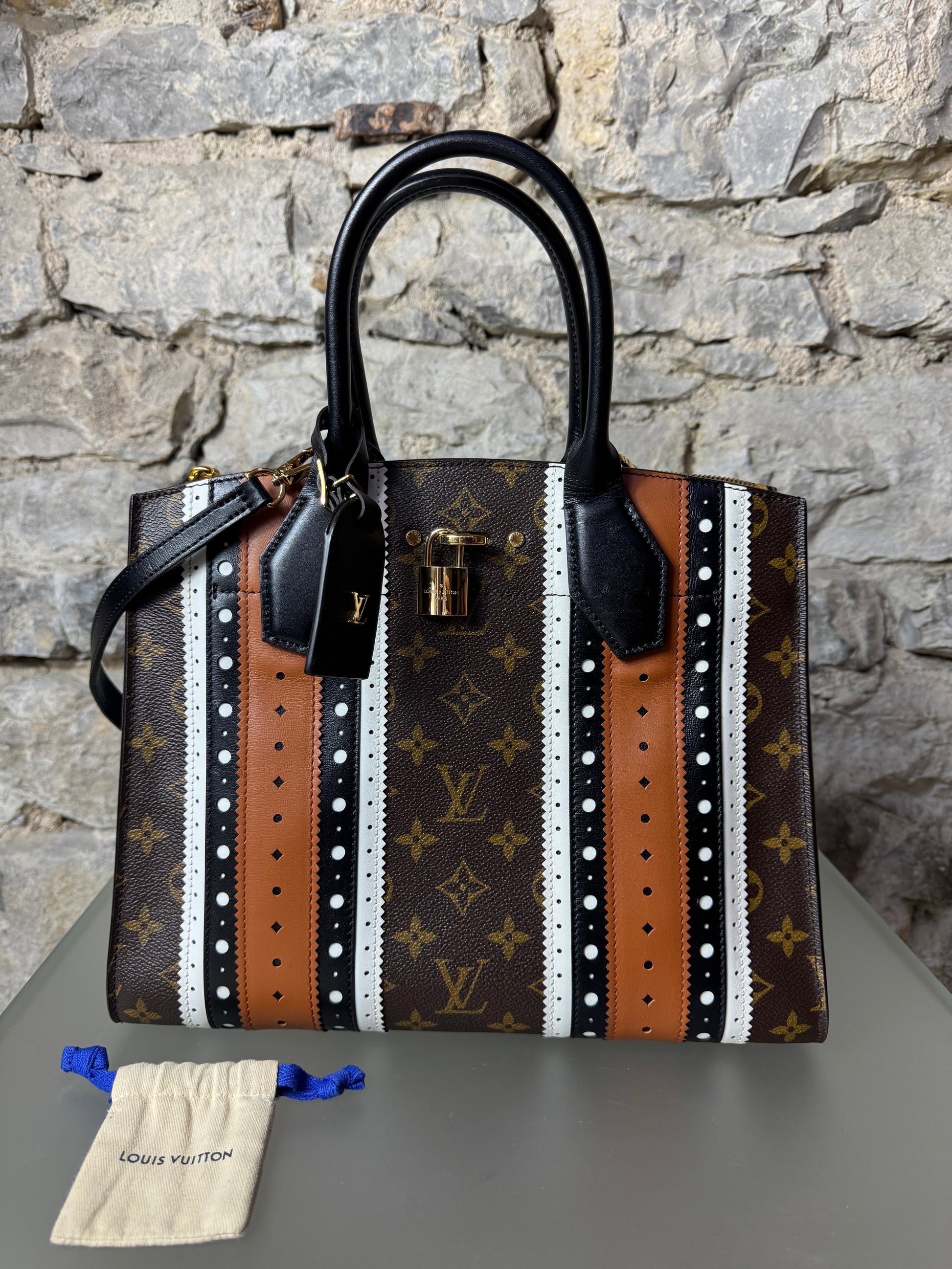 Die Louis Vuitton City Steamer ist eine Hommage an das Erbe des Hauses Louis Vuitton und verbindet klassische Eleganz mit modernen Details. Charakteristisch sind das gravierte Vorhängeschloss, das Namensschild sowie der heißgeprägte LV-Kreis. Gefertigt aus genarbtem Taurillon-Leder, bietet die Tasche reichlich Platz für Unterlagen und Essentials und eignet sich damit perfekt für Business und Alltag. Dieses Modell wurde auf dem LV Runway 2017 präsentiert und ist aufgrund seines Designs eine seltene und begehrte Tasche.