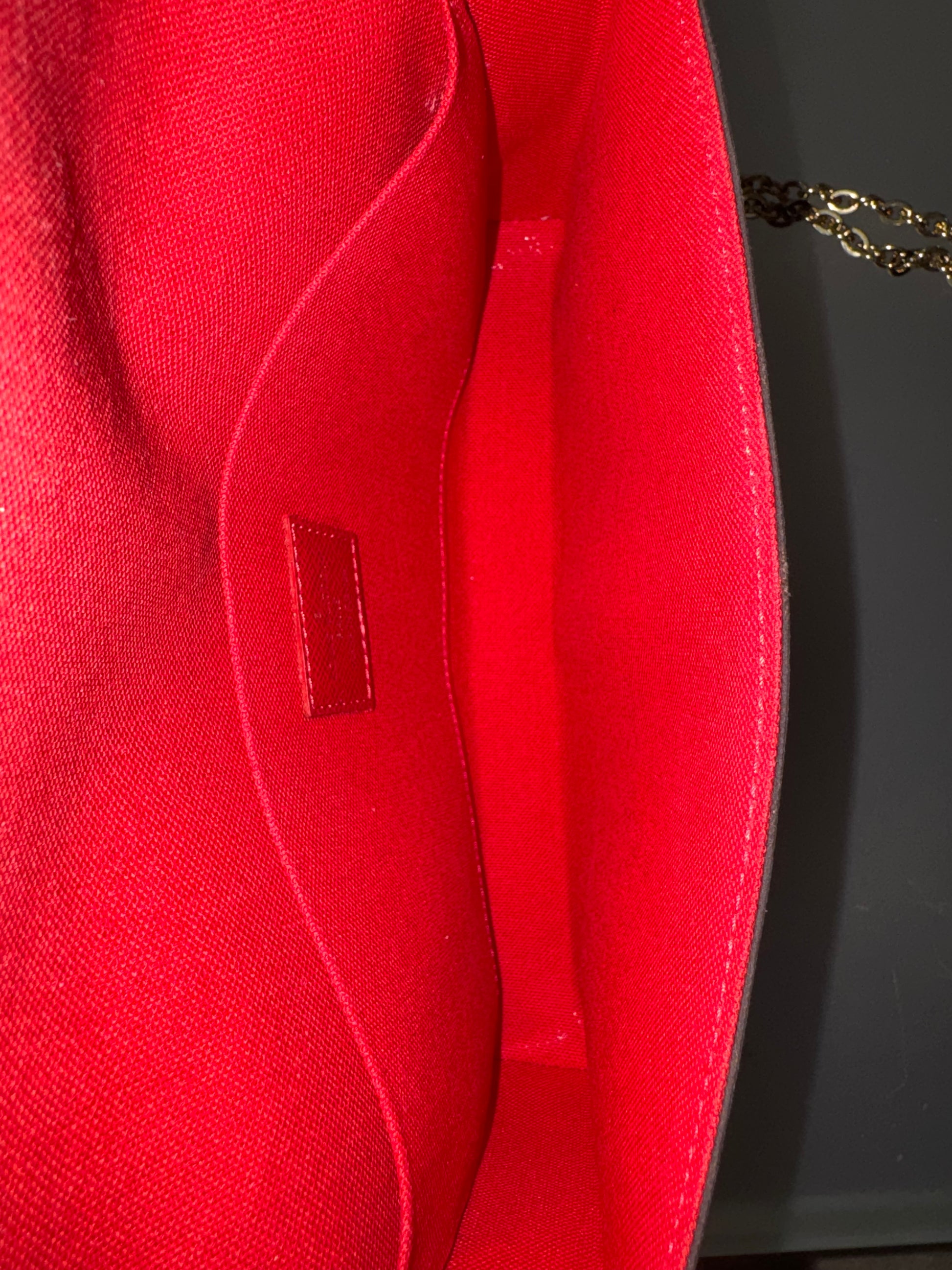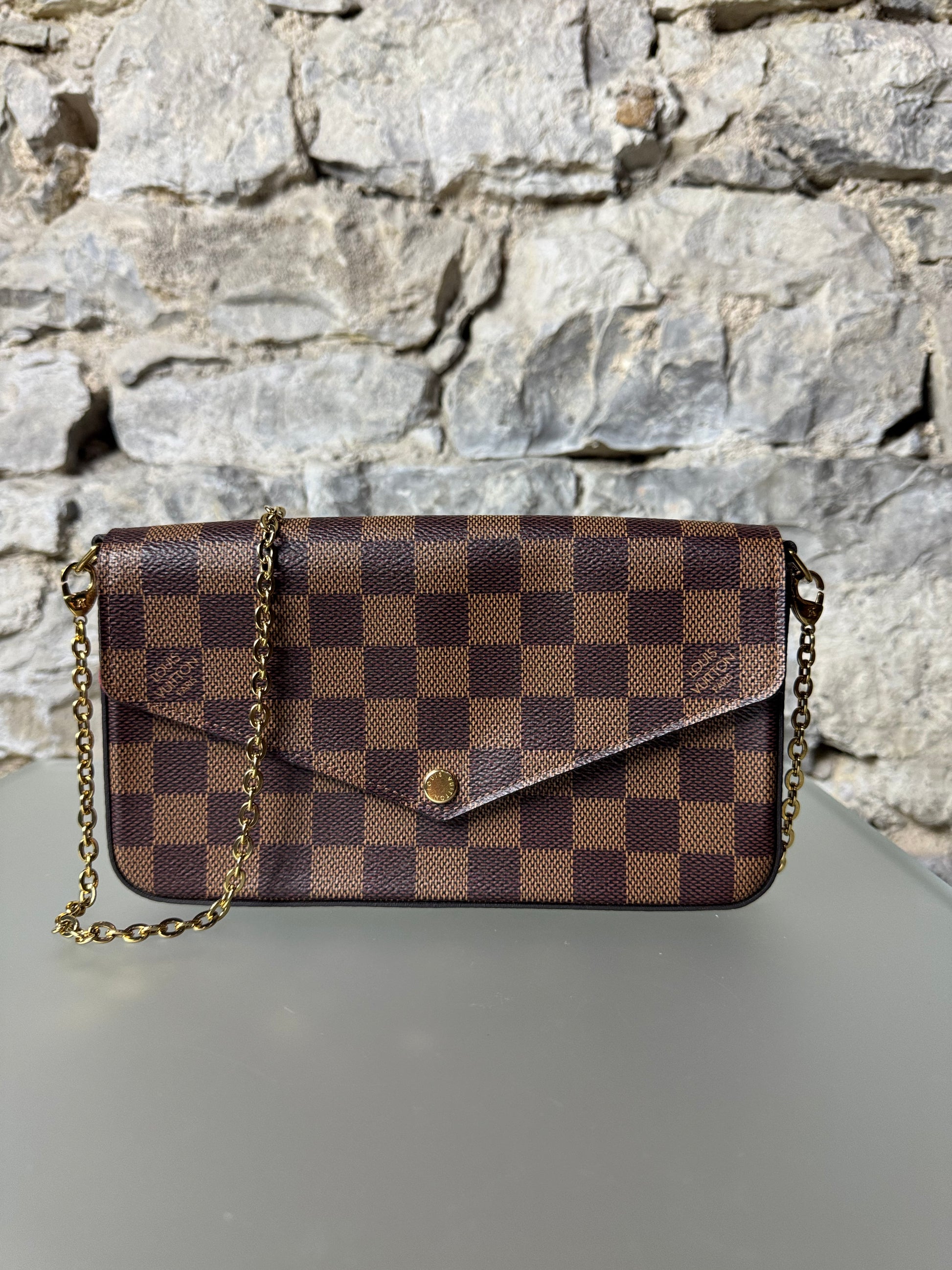 Die elegante Louis Vuitton Félicie in klassischem Damier Ebene Canvas vereint zeitlosen Stil mit praktischer Vielseitigkeit. Sie kann als Crossbody-Bag, Clutch oder Geldbörse getragen werden und ist damit der perfekte Begleiter für Tag und Abend.