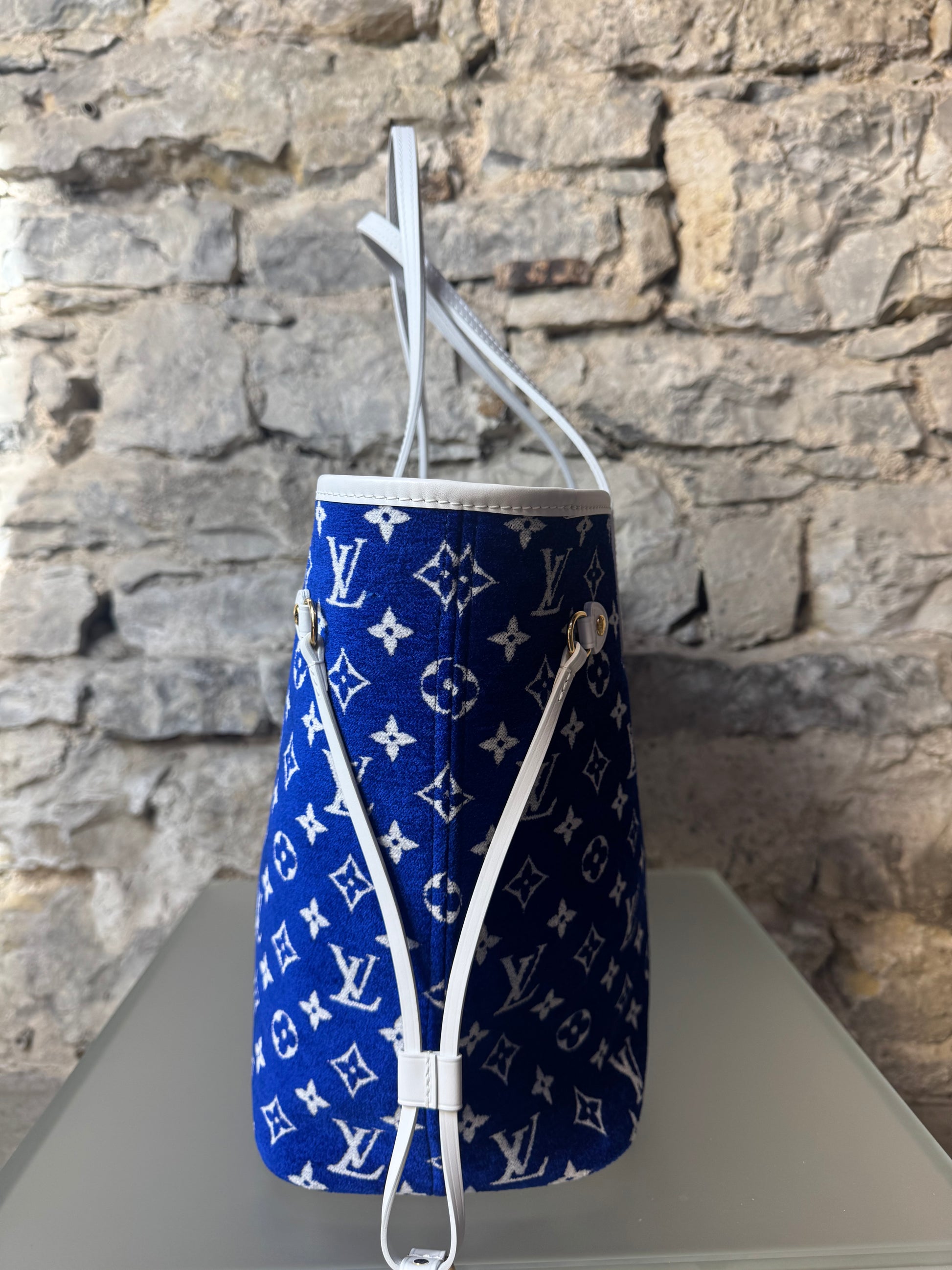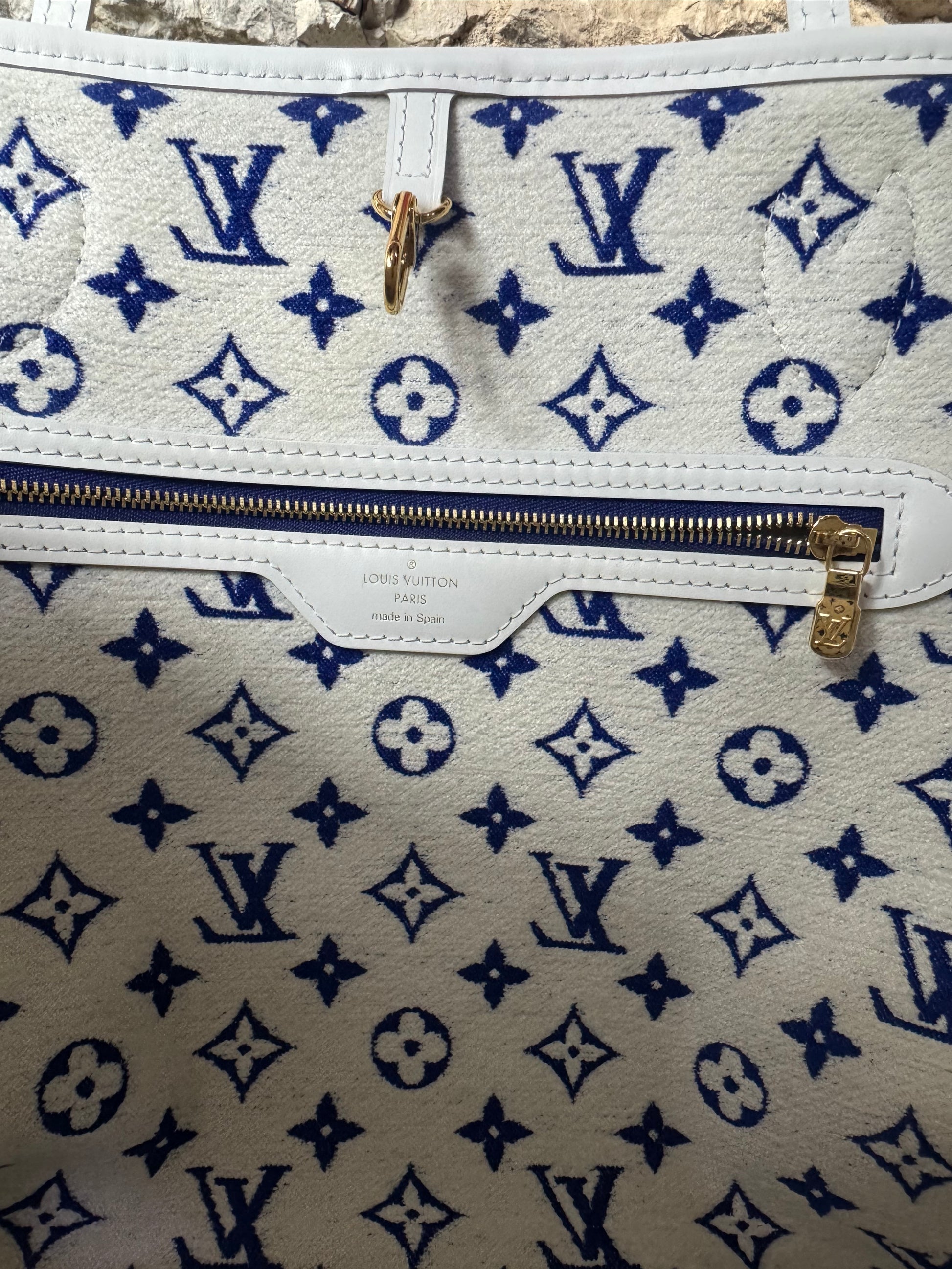 Louis Vuitton Jacquard Velvet Monogram LV Match Neverfull MM Tote – Blau & Weiß
