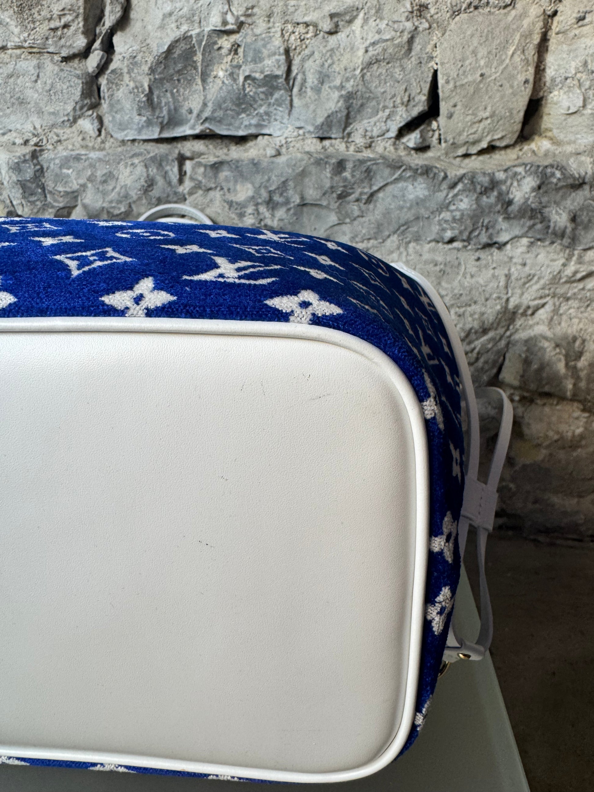 Diese exklusive Louis Vuitton Neverfull MM aus der limitierten LV Match Kollektion überzeugt mit ihrem luxuriösen Jacquard-Velours-Monogram in kräftigem Blau und elegantem weißem Besatz. Die samtige Haptik kombiniert mit dem ikonischen Monogramm macht dieses Modell zu einem echten Highlight für Sammler und Liebhaber besonderer Louis Vuitton Stücke.