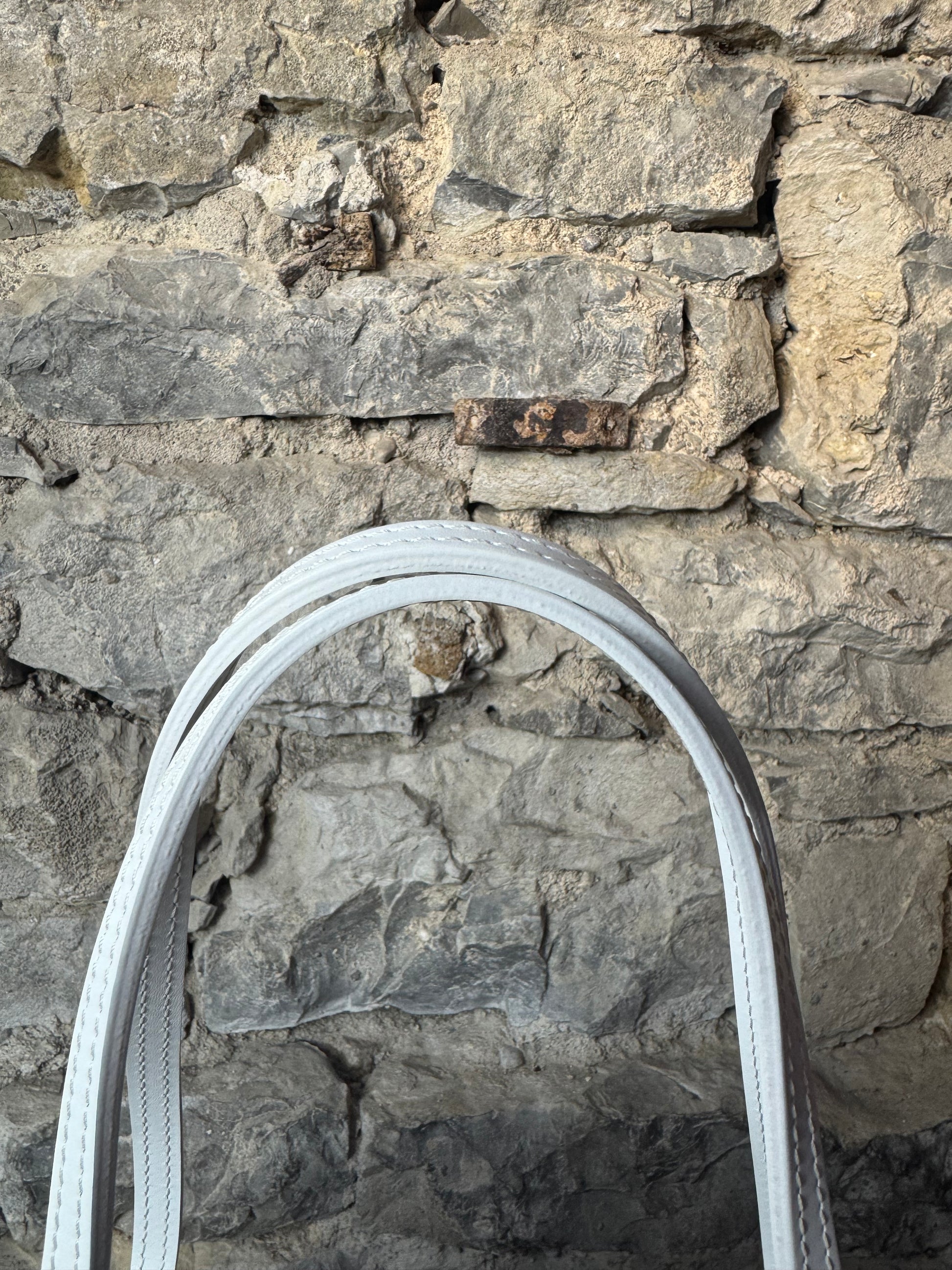 - Farbe: Blau mit weißem Lederbesatz