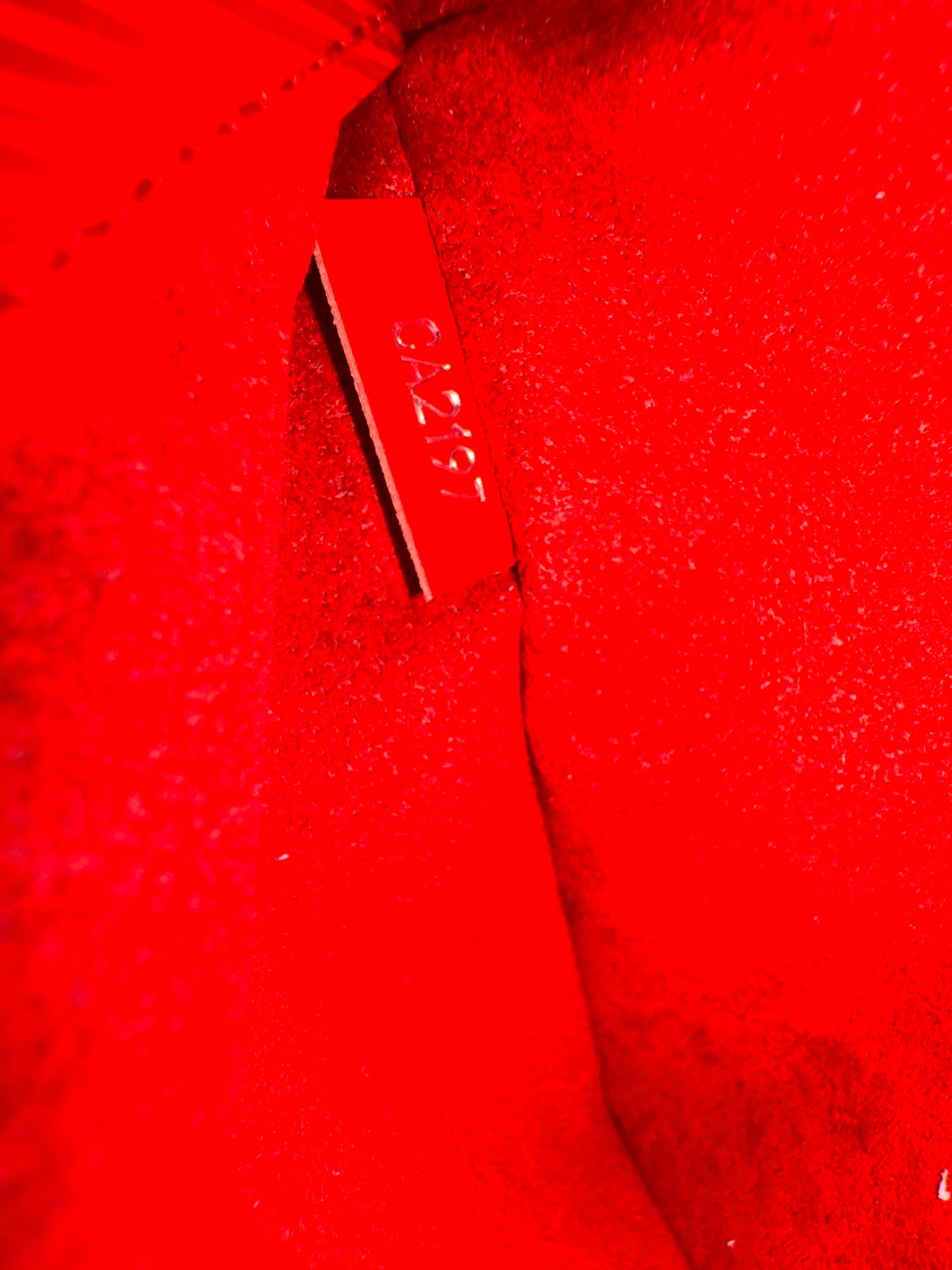 - Auf der Vorderseite befindet sich ein kleiner Kratzer im roten Epi Leder, der jedoch nicht stark auffällt.
