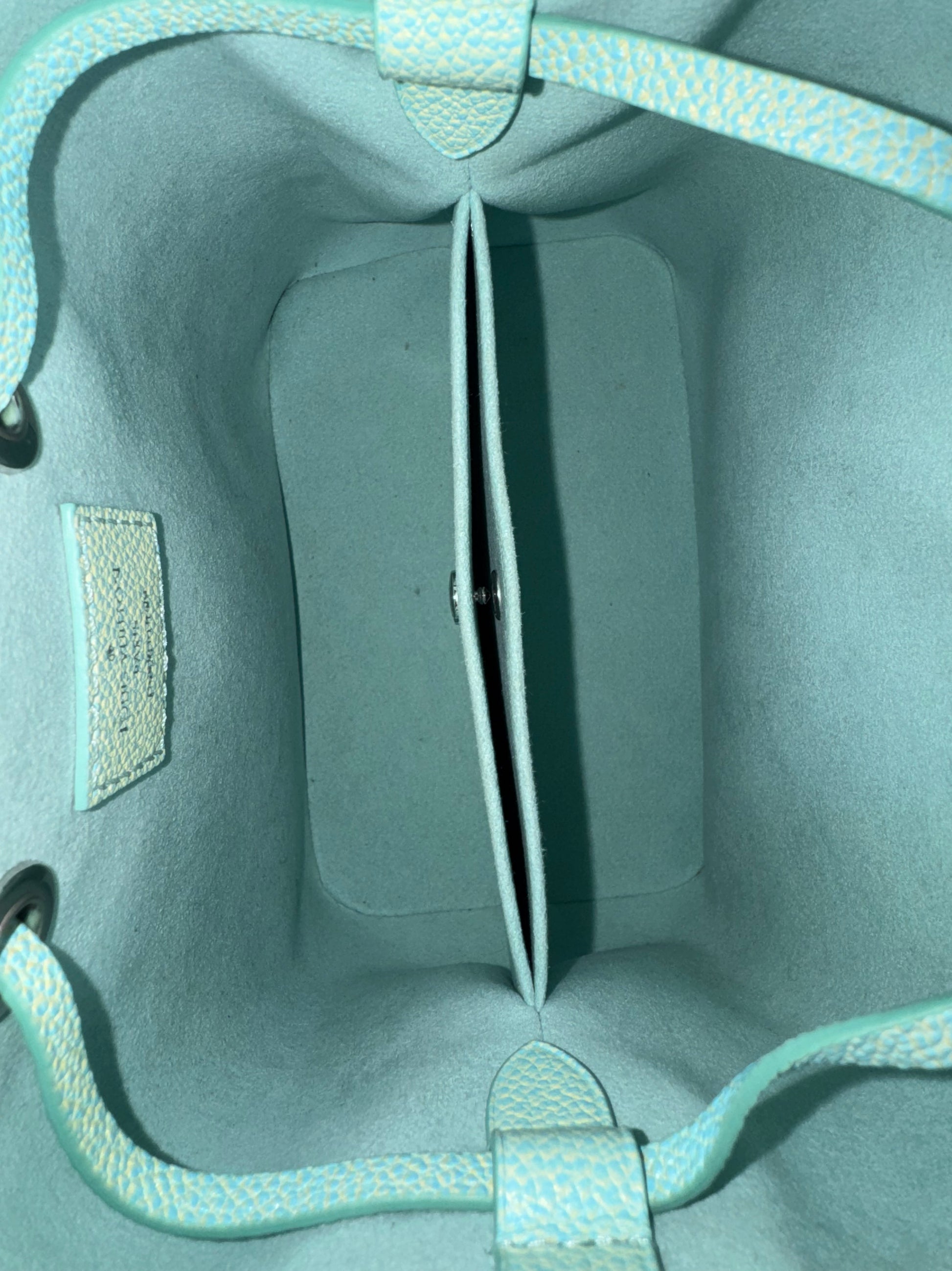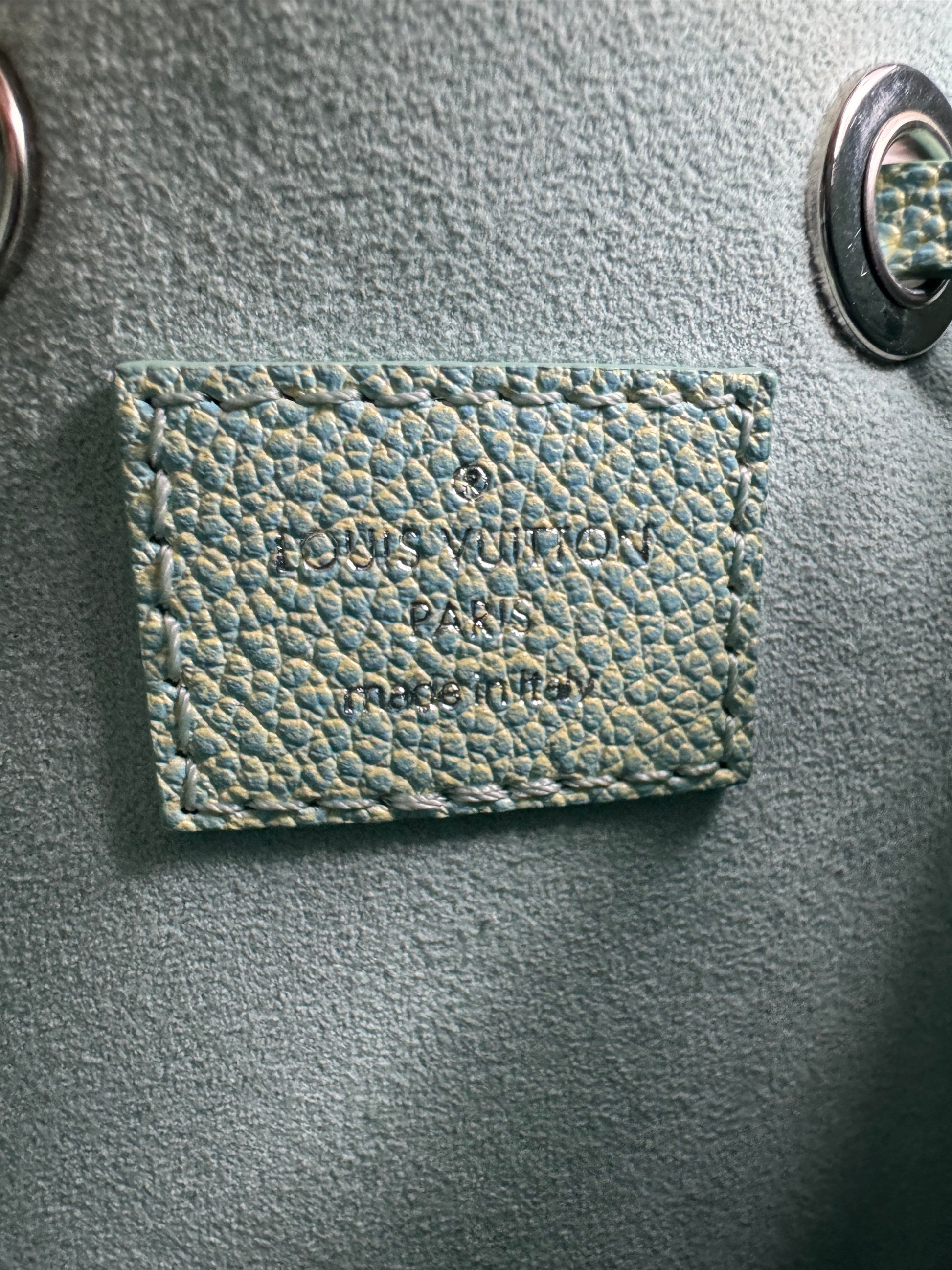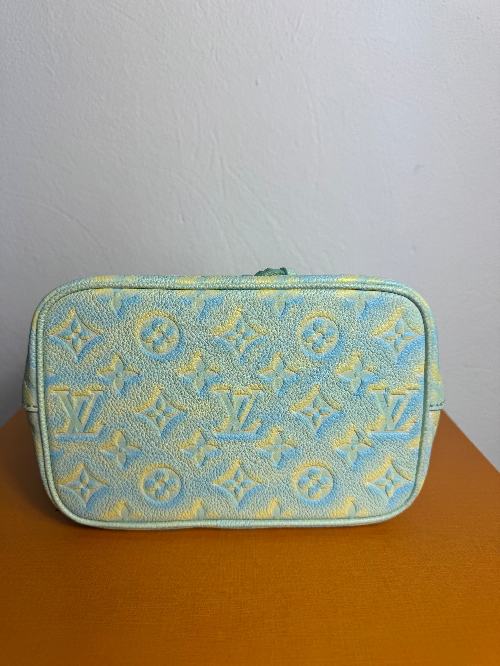 Diese besondere Louis Vuitton Néonoé BB aus der exklusiven Monogram Empreinte „Summer Stardust“ Linie ist ein echtes Highlight für Liebhaberinnen seltener Louis-Vuitton-Modelle. Das fein genarbte Empreinte-Leder mit eingeprägtem Monogramm trifft auf einen außergewöhnlichen Farbverlauf in Blau-, Grün- und Gelbtönen, der der Tasche einen einzigartigen, sommerlichen Look verleiht.