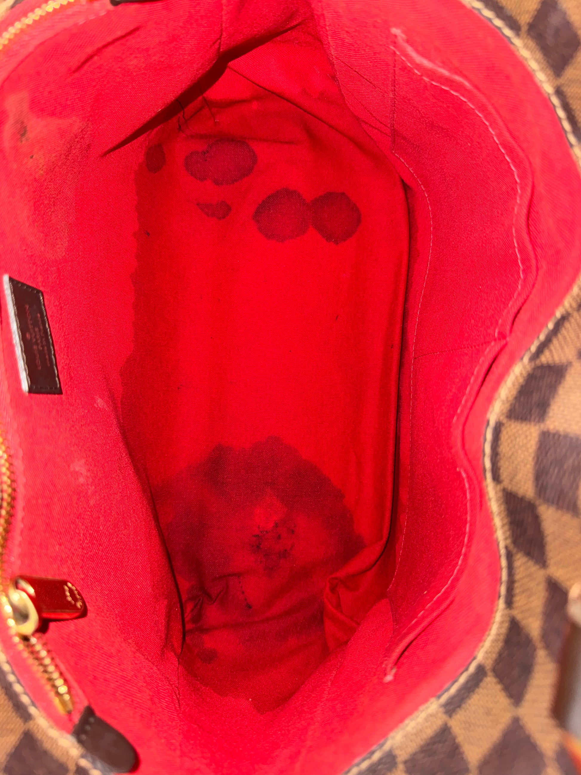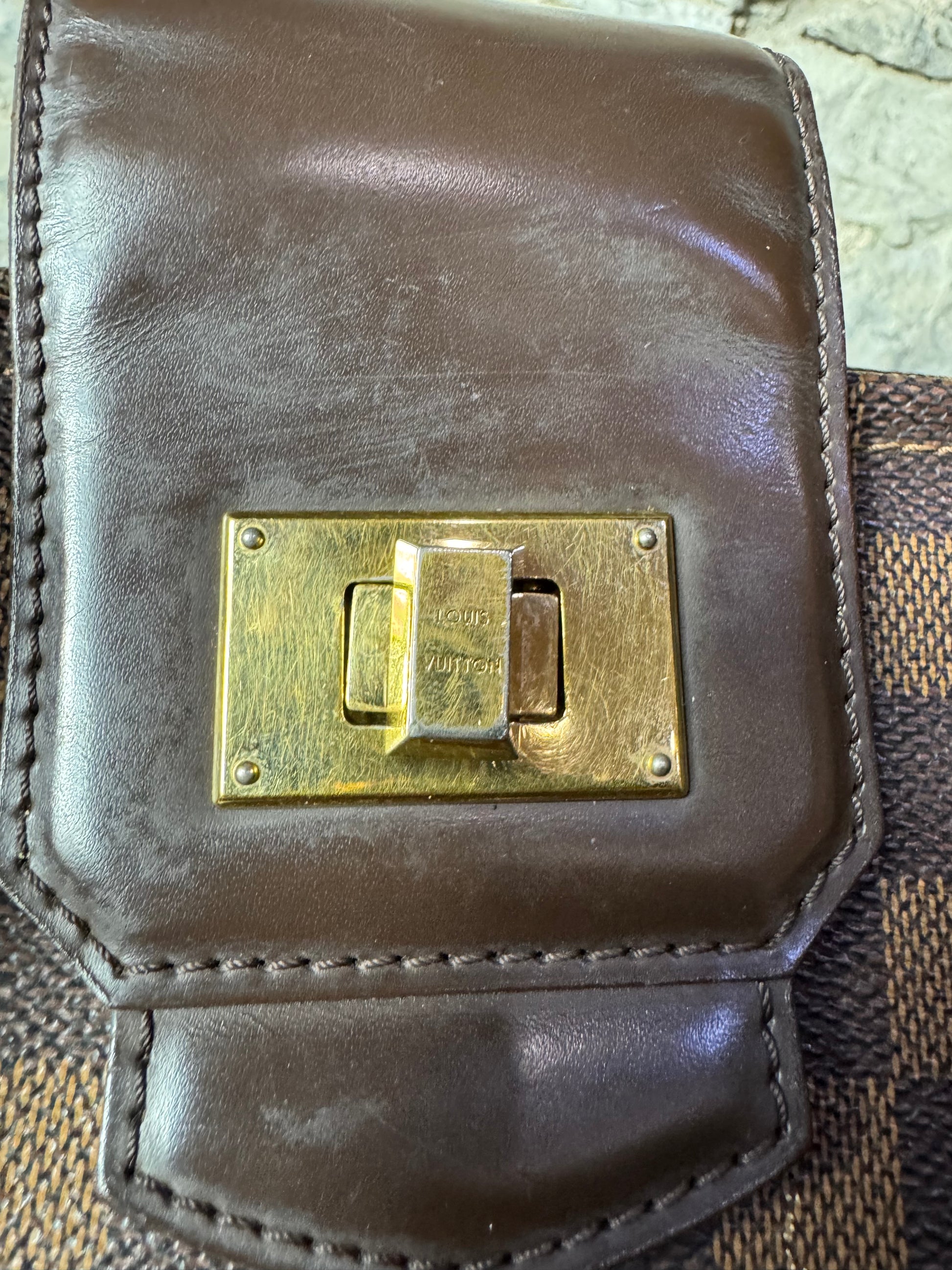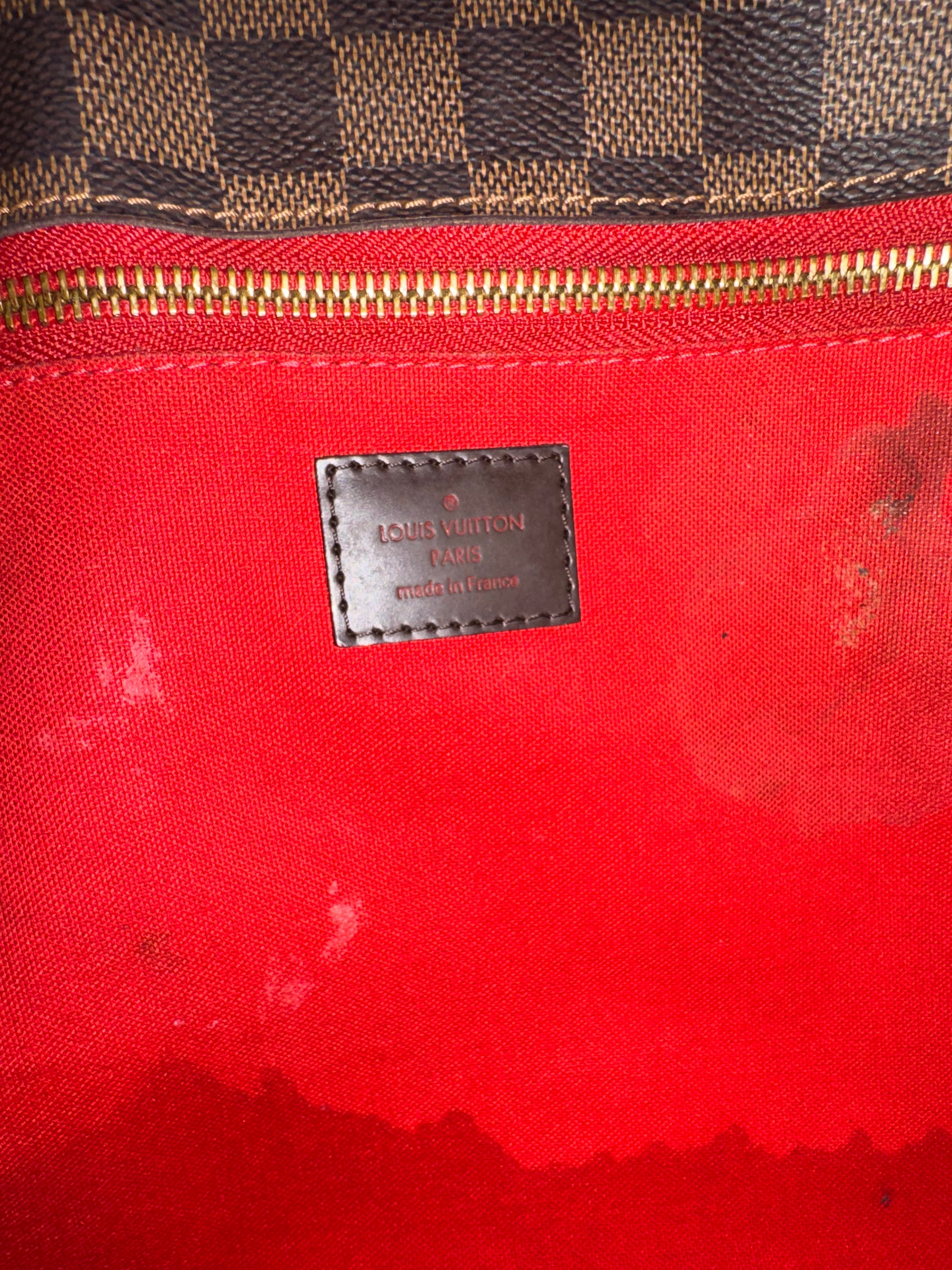 Trotz der deutlichen Gebrauchsspuren im Inneren präsentiert sich die Louis Vuitton Rosebery äußerlich in einem gepflegten Zustand. Sie bleibt ein elegantes Accessoire und ein begehrtes Sammlerstück aus der klassischen Damier Ebene Linie.