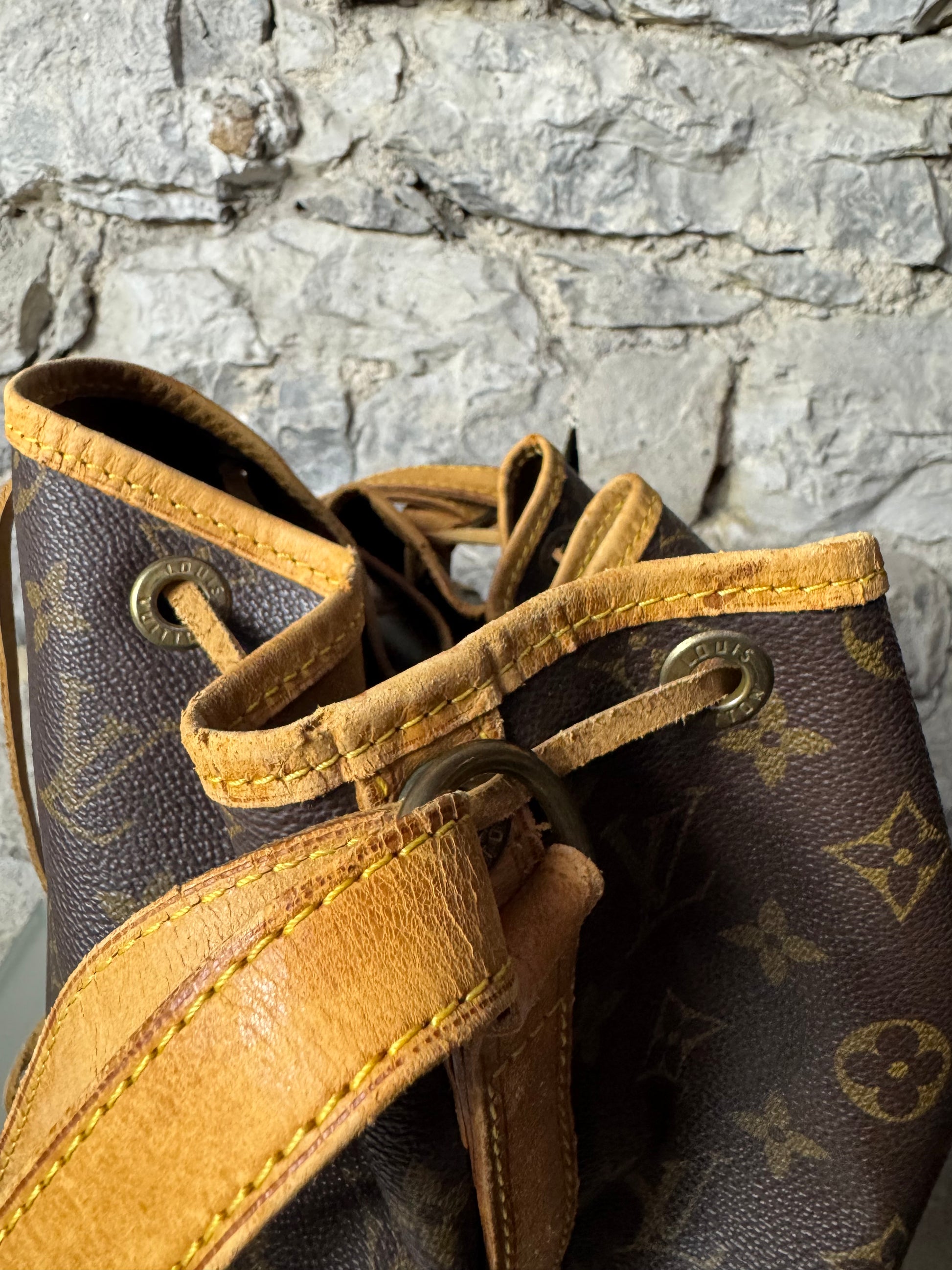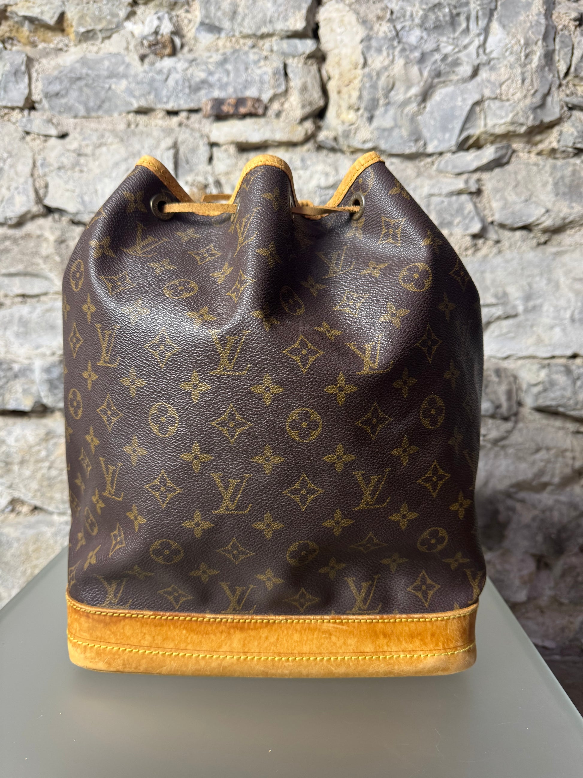 Diese Louis Vuitton Sac Noé Grande ist ein authentisches Vintage-Stück mit sichtbarer Geschichte und Charakter. Trotz der deutlichen Gebrauchsspuren ist das ikonische Monogram gut erhalten und das Stück weiterhin funktionsfähig – ideal für Liebhaberinnen echter Vintage-Unikate.