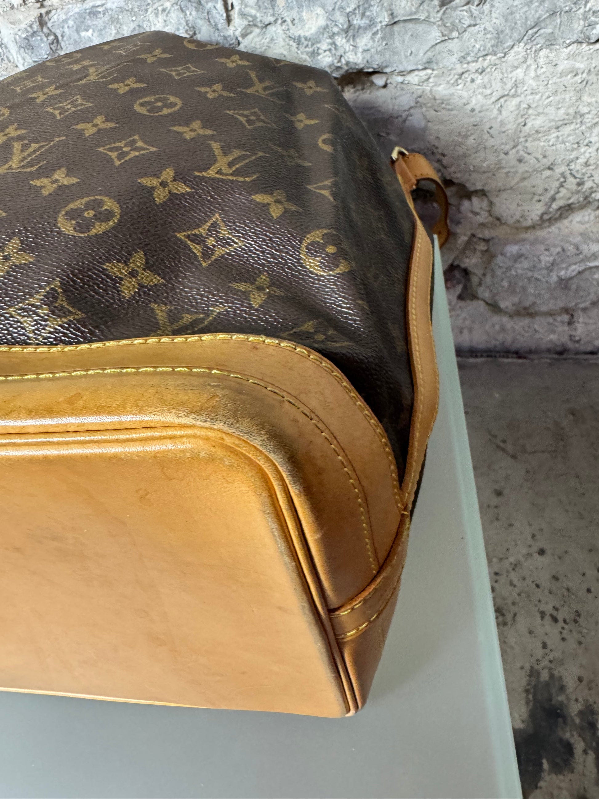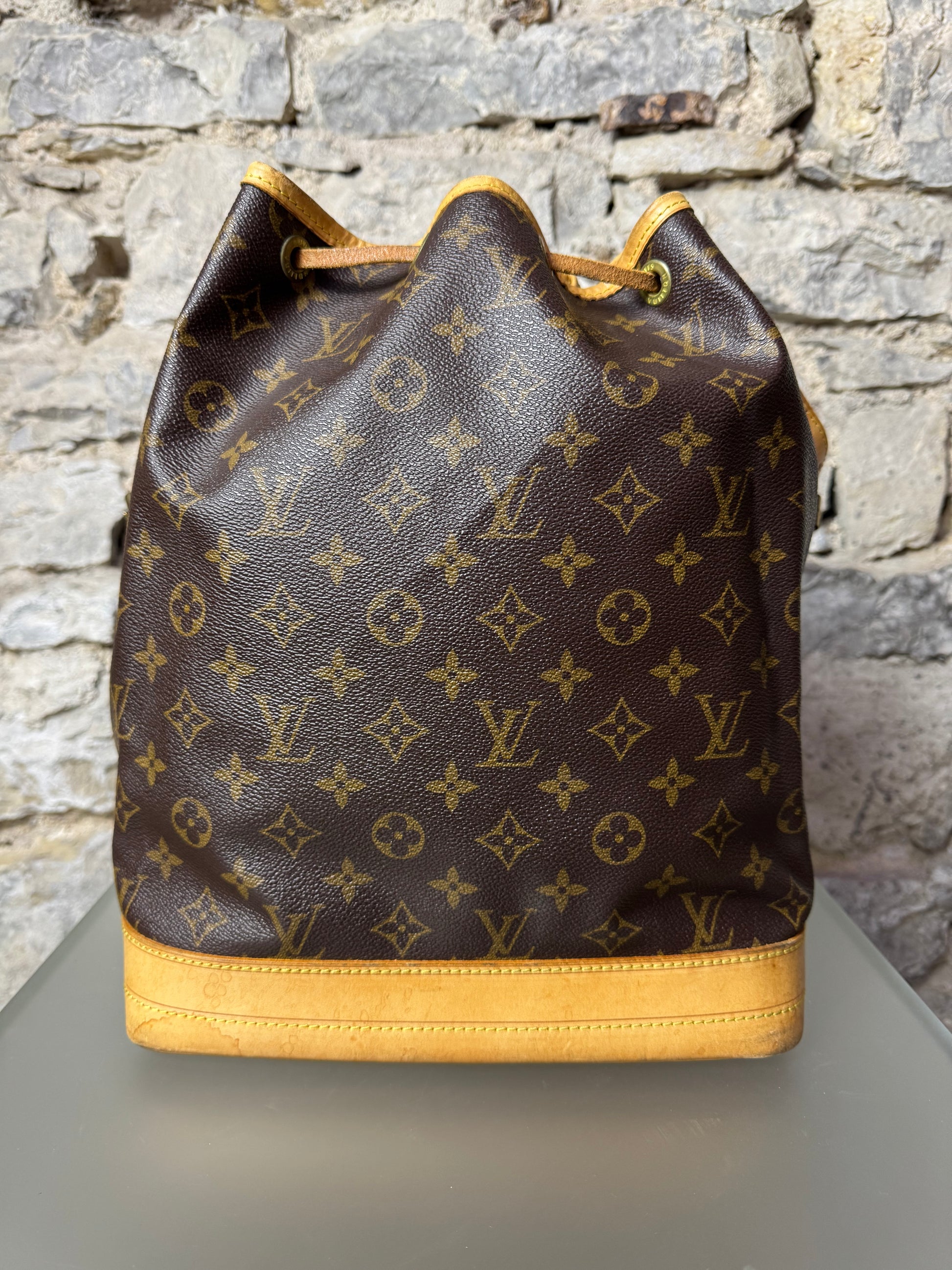 Trotz ihrer altersbedingten Gebrauchsspuren präsentiert sich diese Louis Vuitton Sac Noé Grande als authentisches Vintage-Stück mit Charakter. Sie überzeugt durch ein stabiles Monogram Canvas und die typische, wunderschön gealterte Patina, die sie zu einem echten Sammlerobjekt macht.