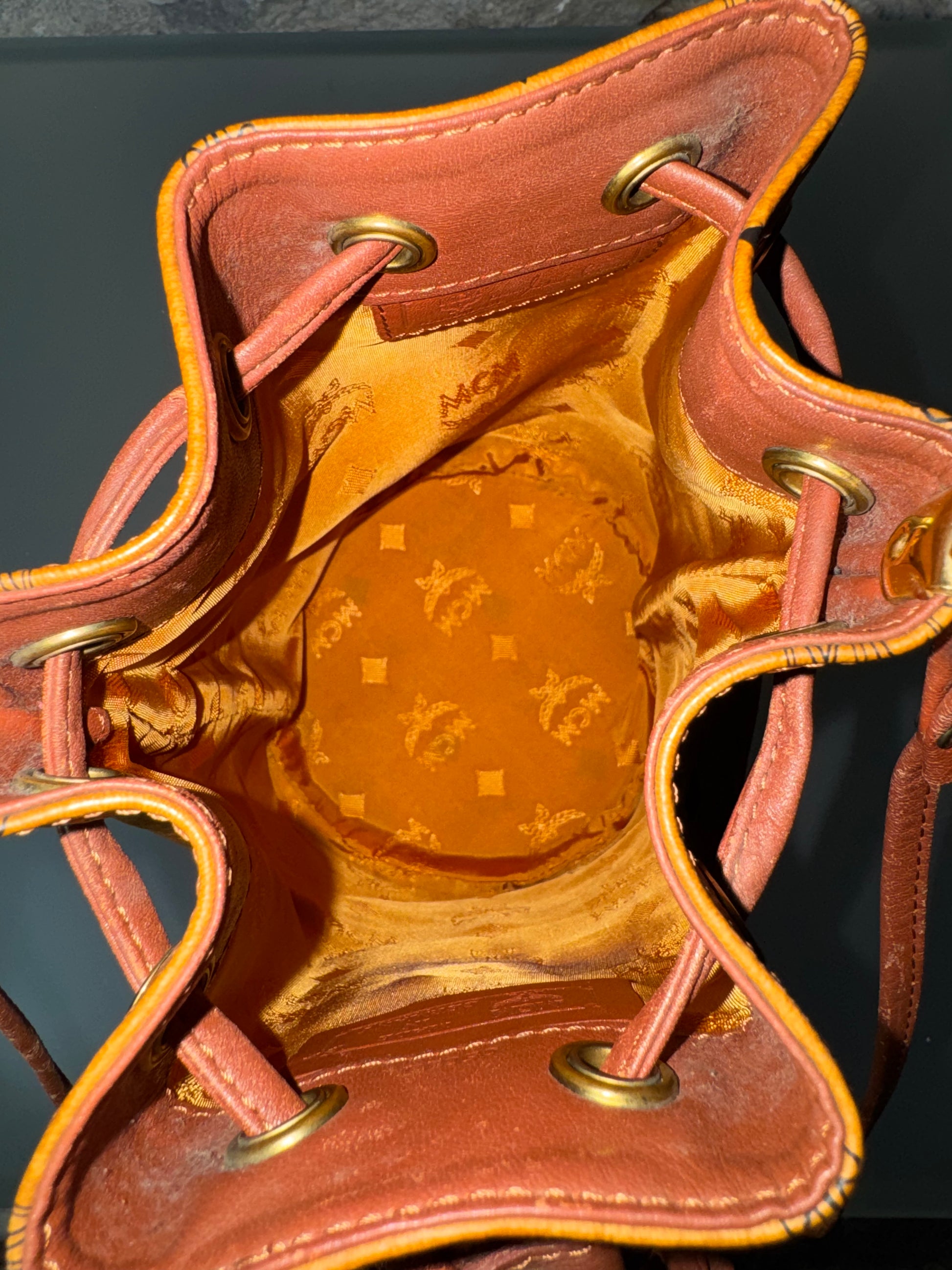 Eine originale MCM Mini-Tasche für Liebhaber von Vintage-Stücken, die den gelebten Charakter und die Geschichte des Accessoires schätzen.