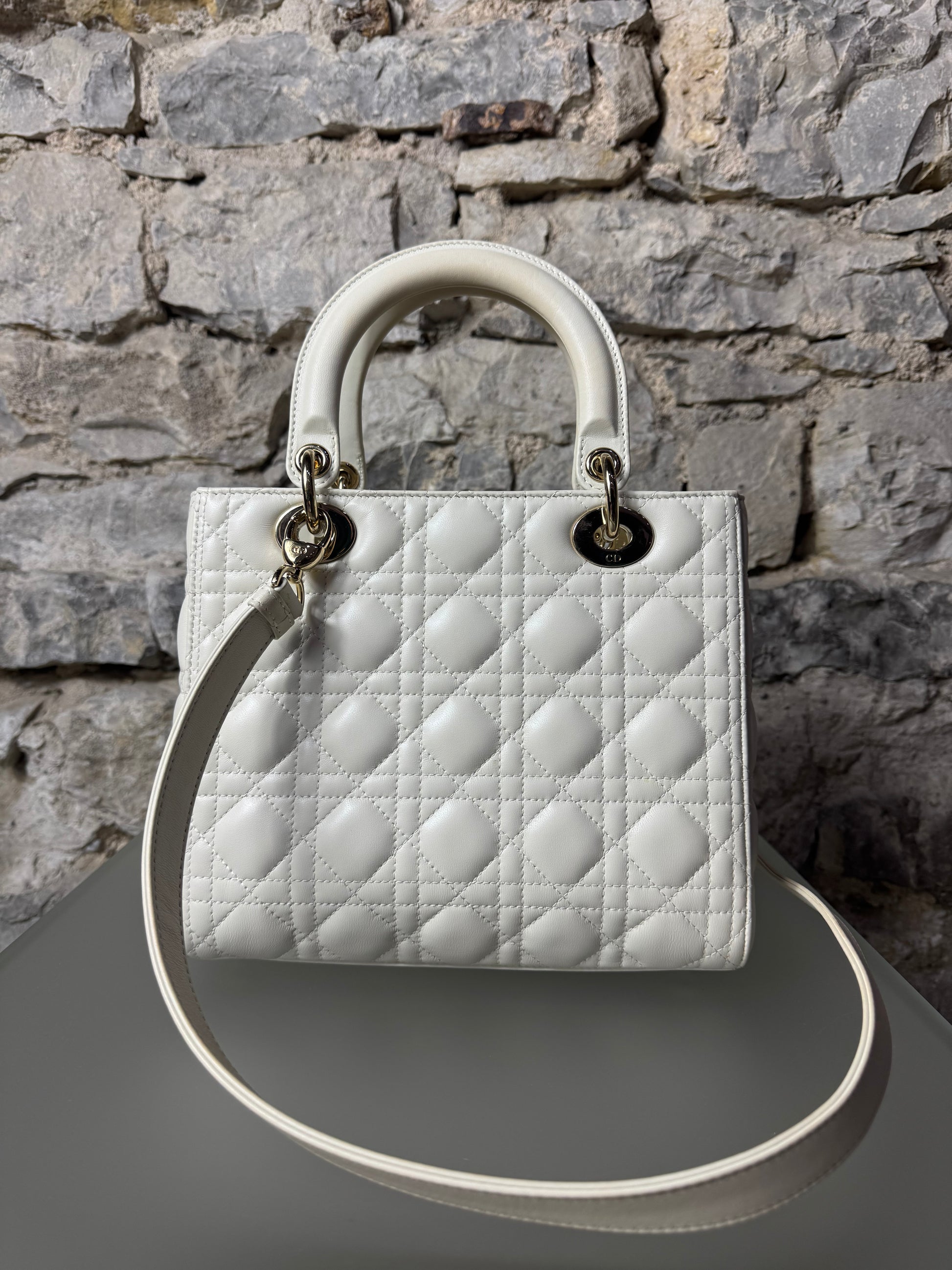 Die Lady Dior Medium in Latte ist ein Symbol für Luxus und Stil – ein elegantes Accessoire, das sowohl im Alltag als auch zu besonderen Anlässen ein echtes Statement setzt.